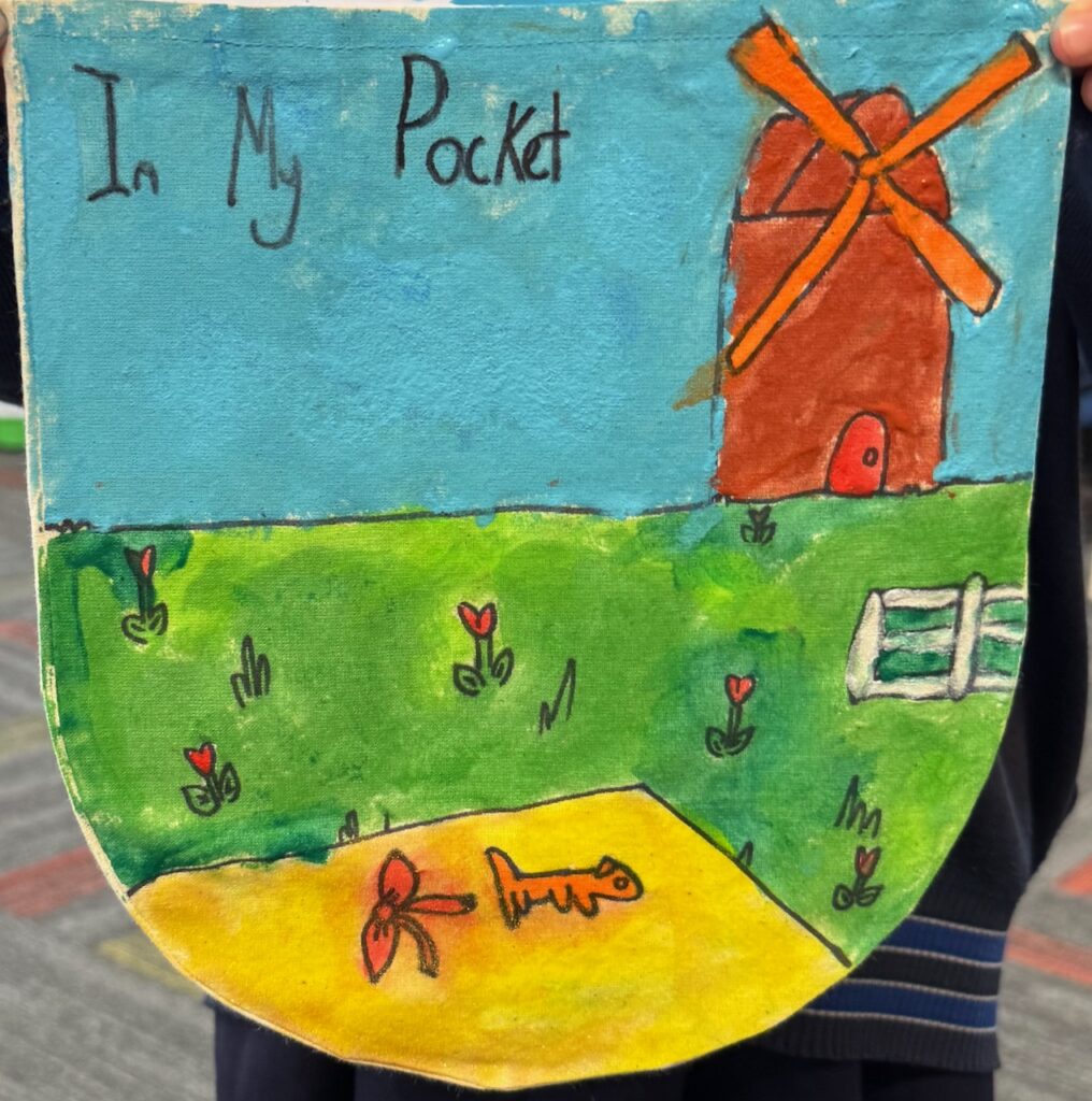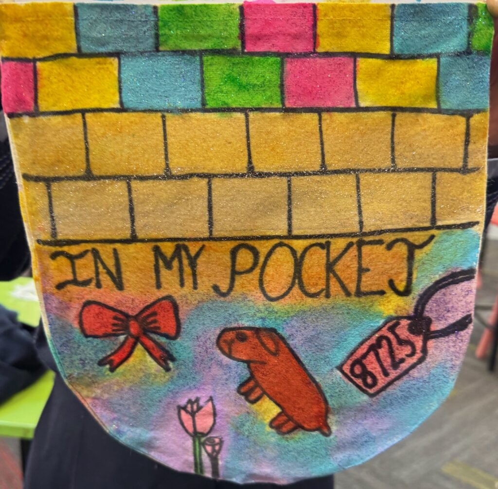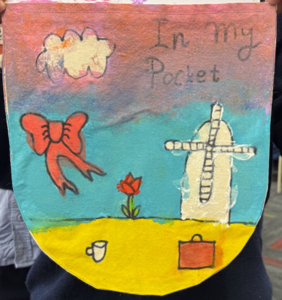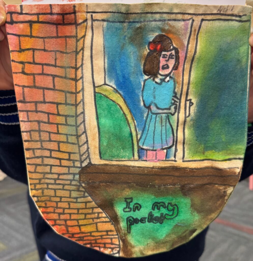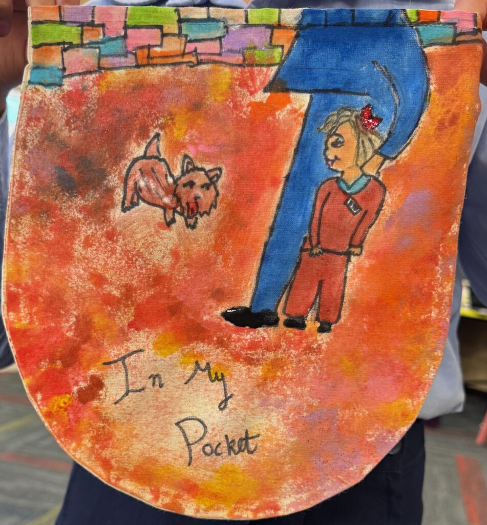 The ‘In My Pocket’ session invited students to step into the shoes of children from that time, considering the difficult choices they faced, the items they might have taken with them and the memories they held on to. Using fabric paints and markers, each student then decorated their own calico pocket, transforming it into a personal expression of memory, identity, and resilience. The creativity on display was incredible and we are proud of each and every student’s work of art.