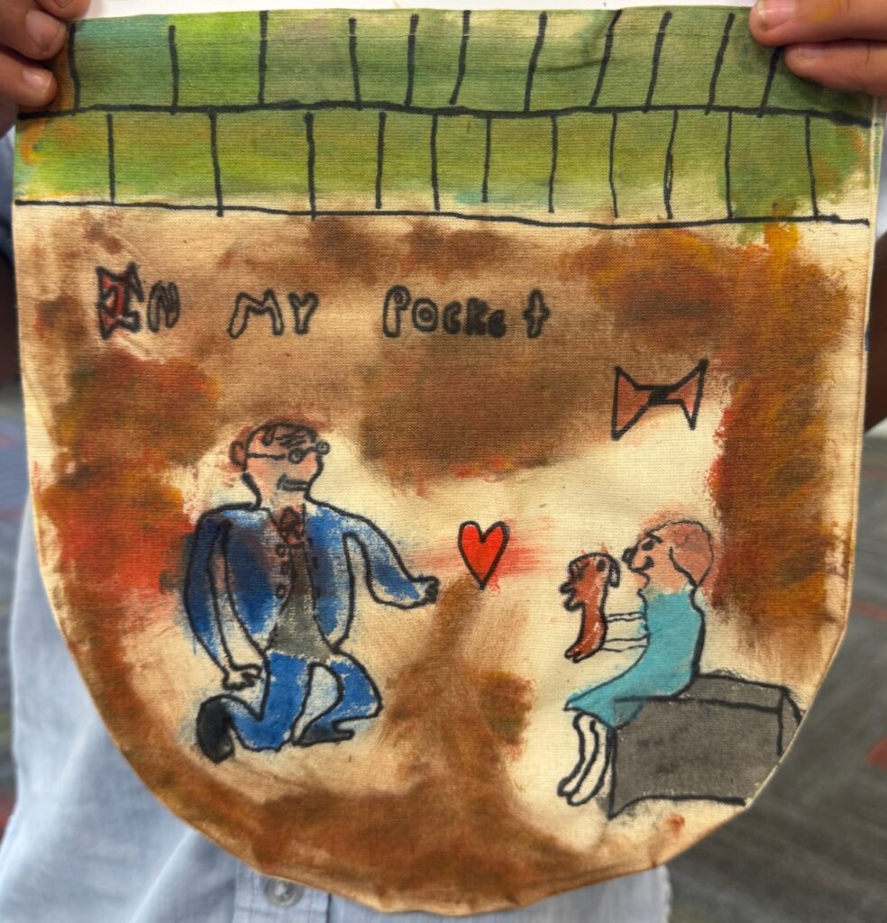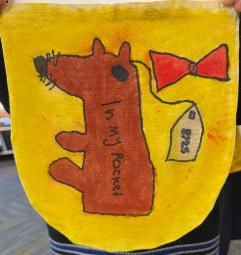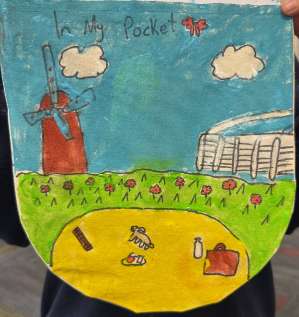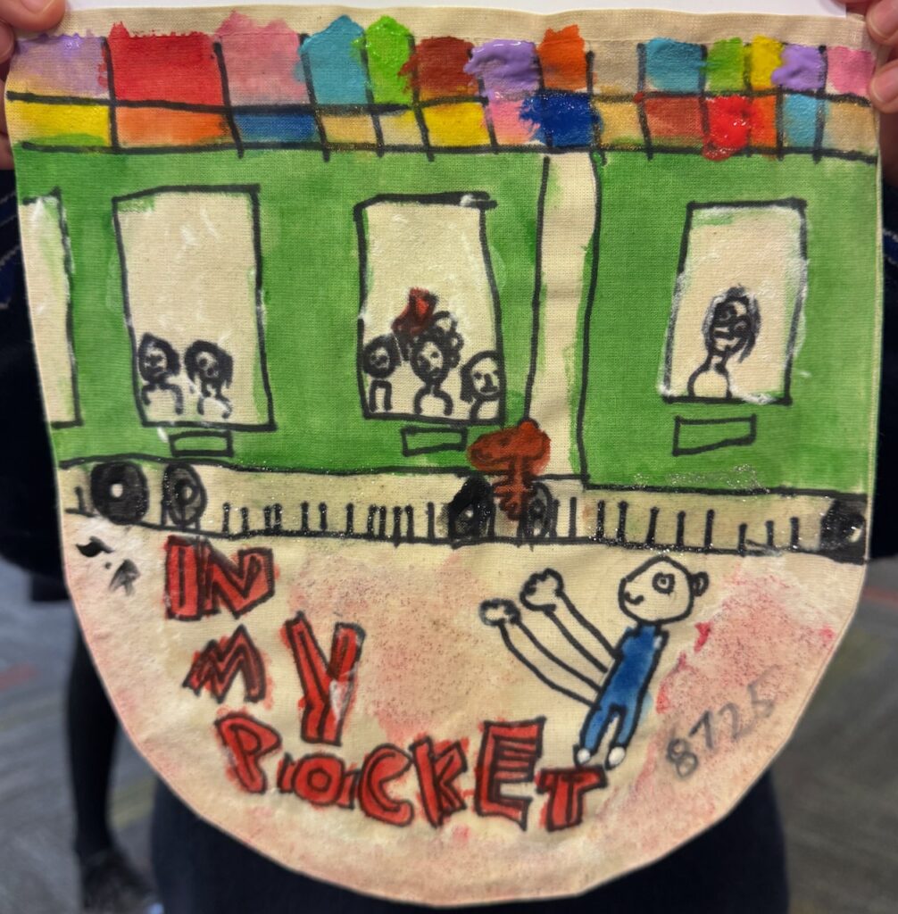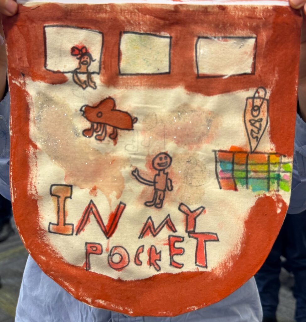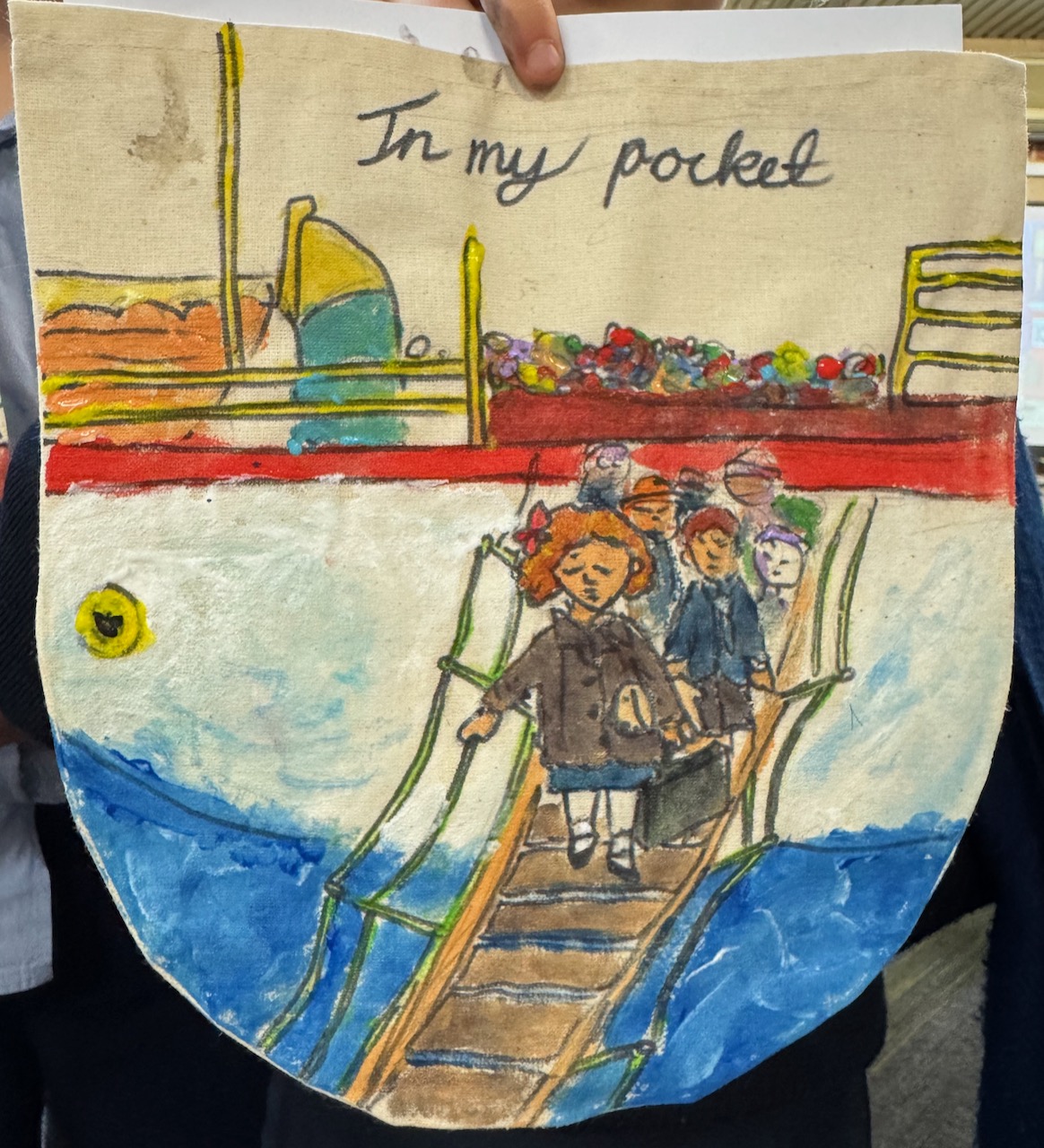 The ‘In My Pocket’ session invited students to step into the shoes of children from that time, considering the difficult choices they faced, the items they might have taken with them and the memories they held on to. Using fabric paints and markers, each student then decorated their own calico pocket, transforming it into a personal expression of memory, identity, and resilience. The creativity on display was incredible and we are proud of each and every student’s work of art.