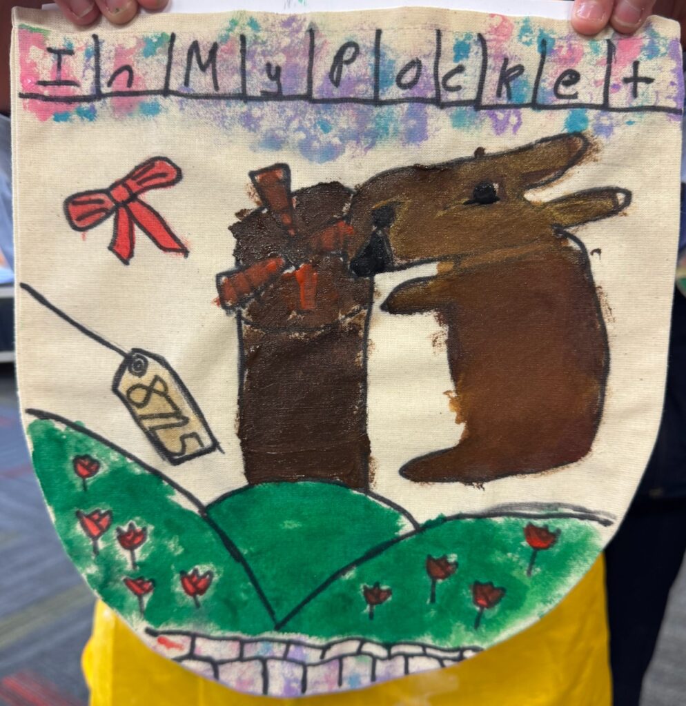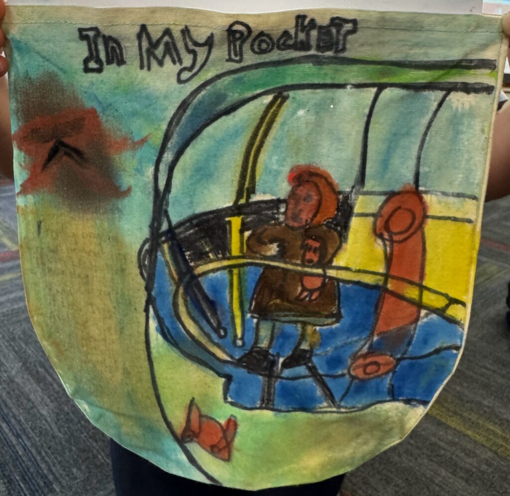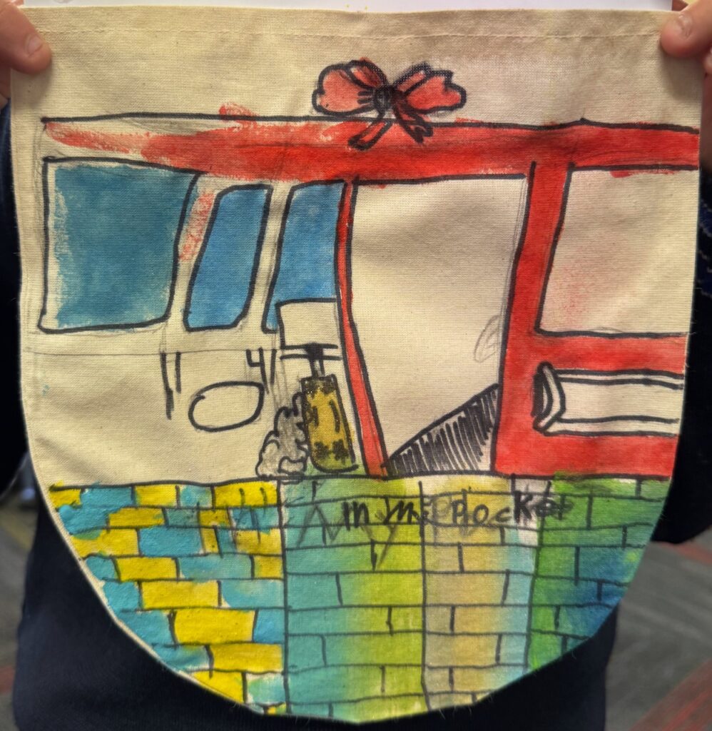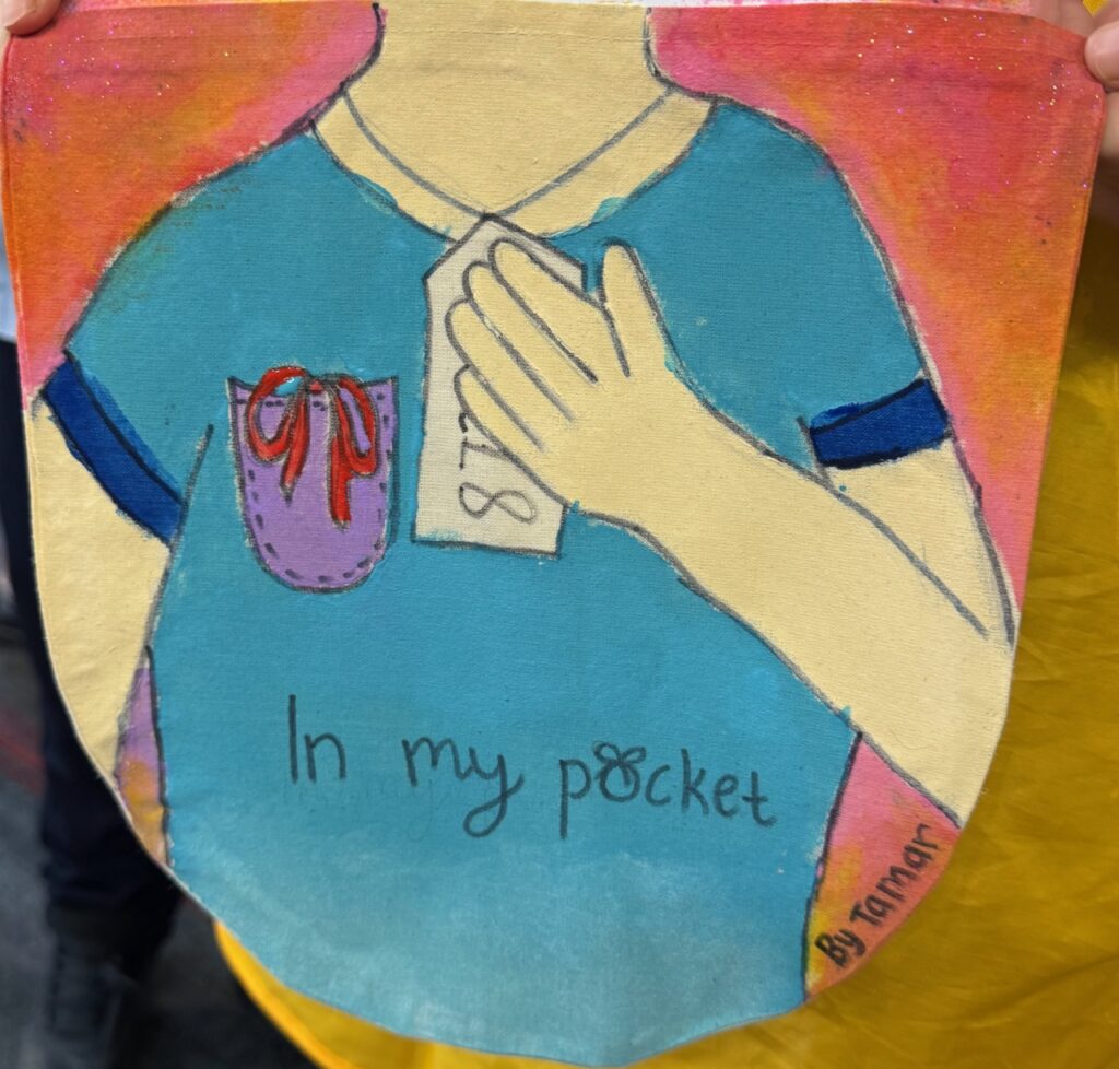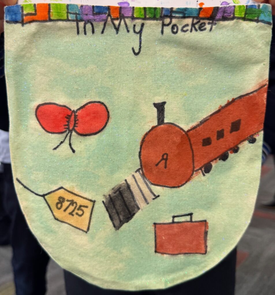 The ‘In My Pocket’ session invited students to step into the shoes of children from that time, considering the difficult choices they faced, the items they might have taken with them and the memories they held on to. Using fabric paints and markers, each student then decorated their own calico pocket, transforming it into a personal expression of memory, identity, and resilience. The creativity on display was incredible and we are proud of each and every student’s work of art.